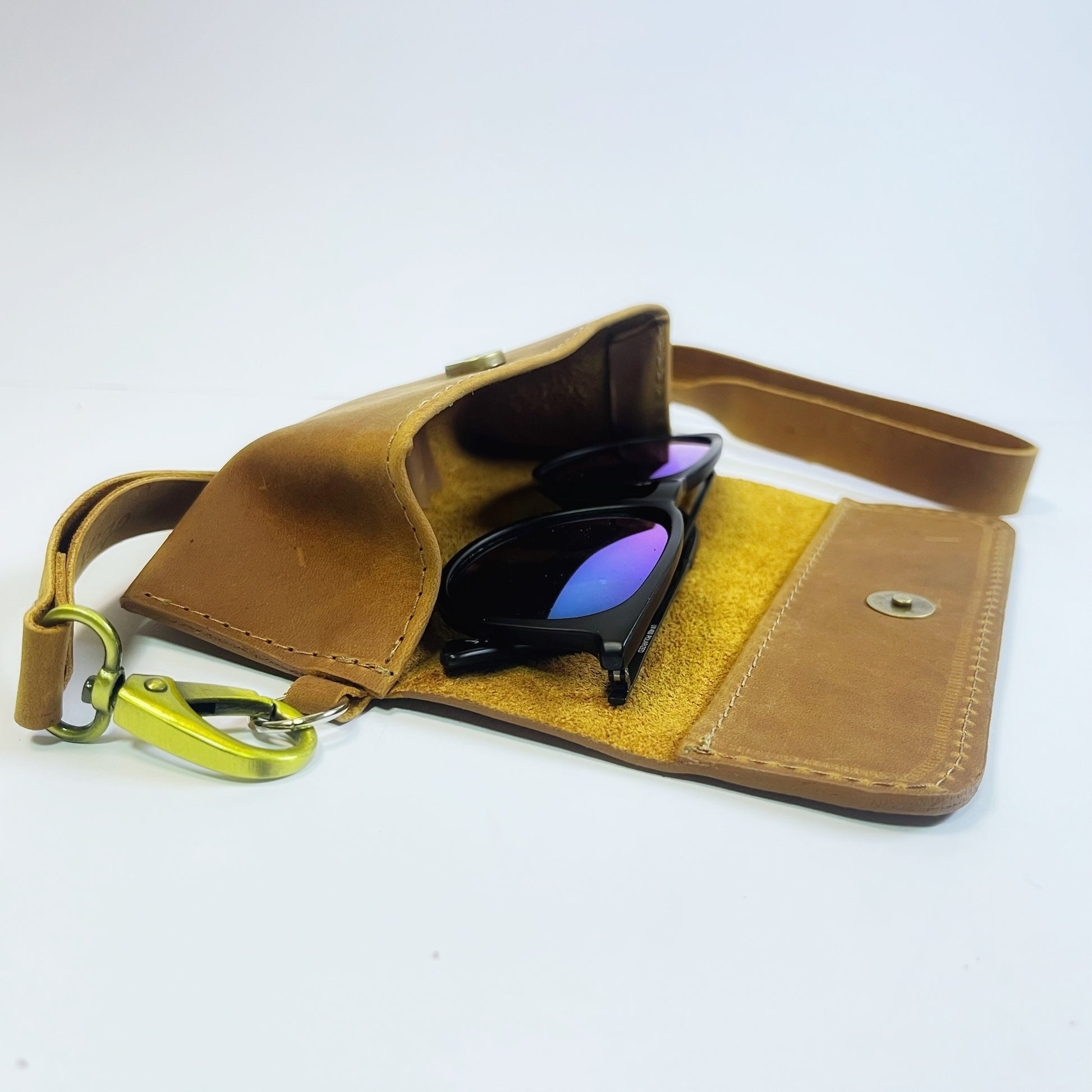 Este elegante porta anteojos de cuero te permitirá mantener tus anteojos seguros y protegidos en todo momento. Nunca más tendrás que preocuparte por perder u olvidar tus anteojos gracias a este práctico accesorio.